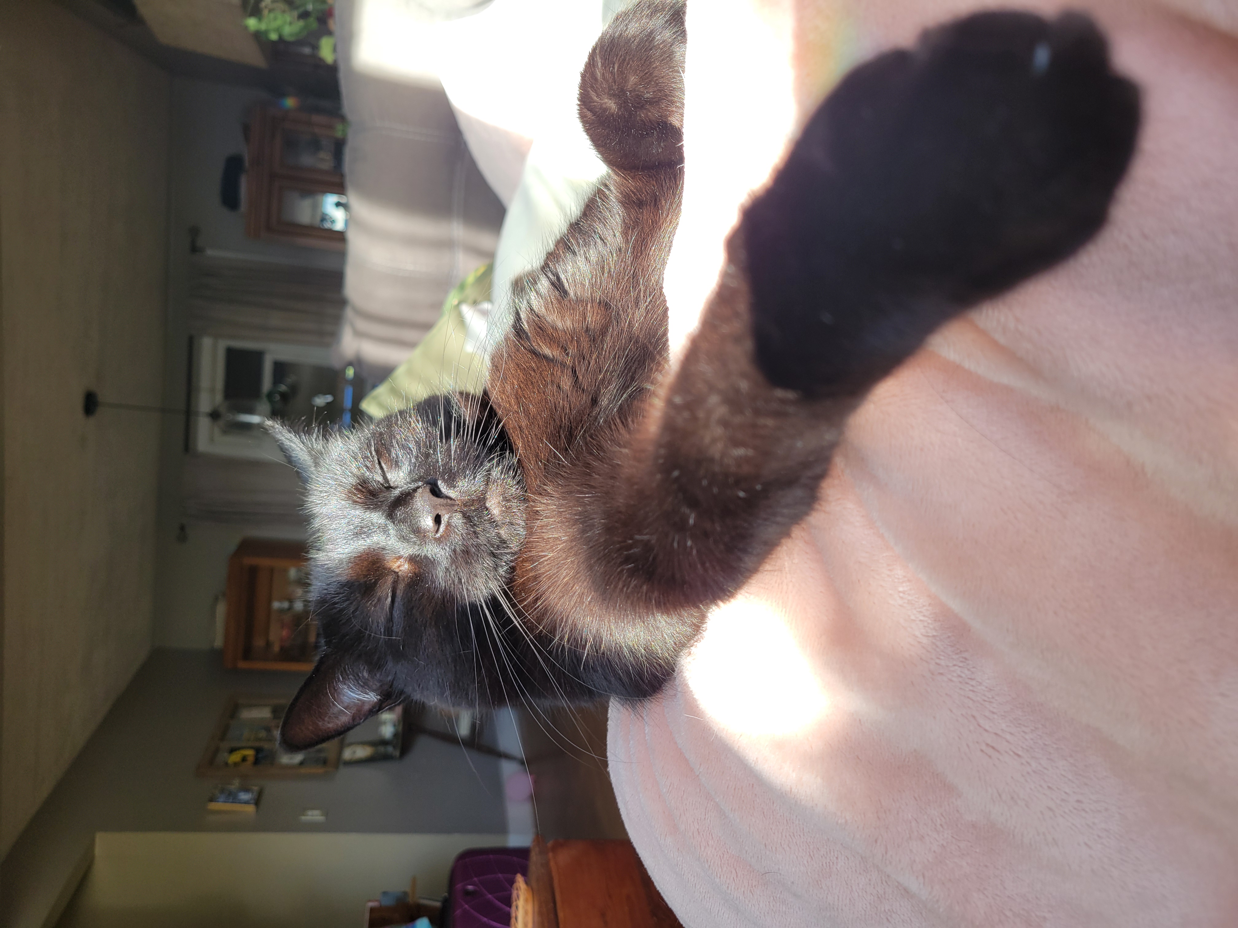 Timmy might just be the sweetest cat that has ever lived. He almost never bites or scratches and never gets tired of being pet and held. He loves to cuddle and be close to people he likes, but he can be pretty shy around new people. When he meows he is usually very quite and squeaky. Sometimes he can be very clingy and will get upset when you don't hold and pet him. His favourite activity is having his belly rubbed.